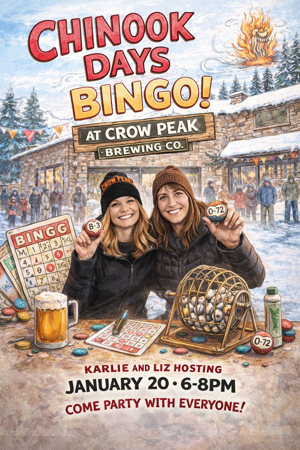 We’re getting crazy and adding an extra Bingo night this month! The same Crow Peak Bingo you know and love, but with guest hosts this time! We’ll be incorporating Chinook Days surprises, taproom specials and prizes– you won’t want to miss it! And as always a portion of proceeds will benefit our local St. Vincent de Paul