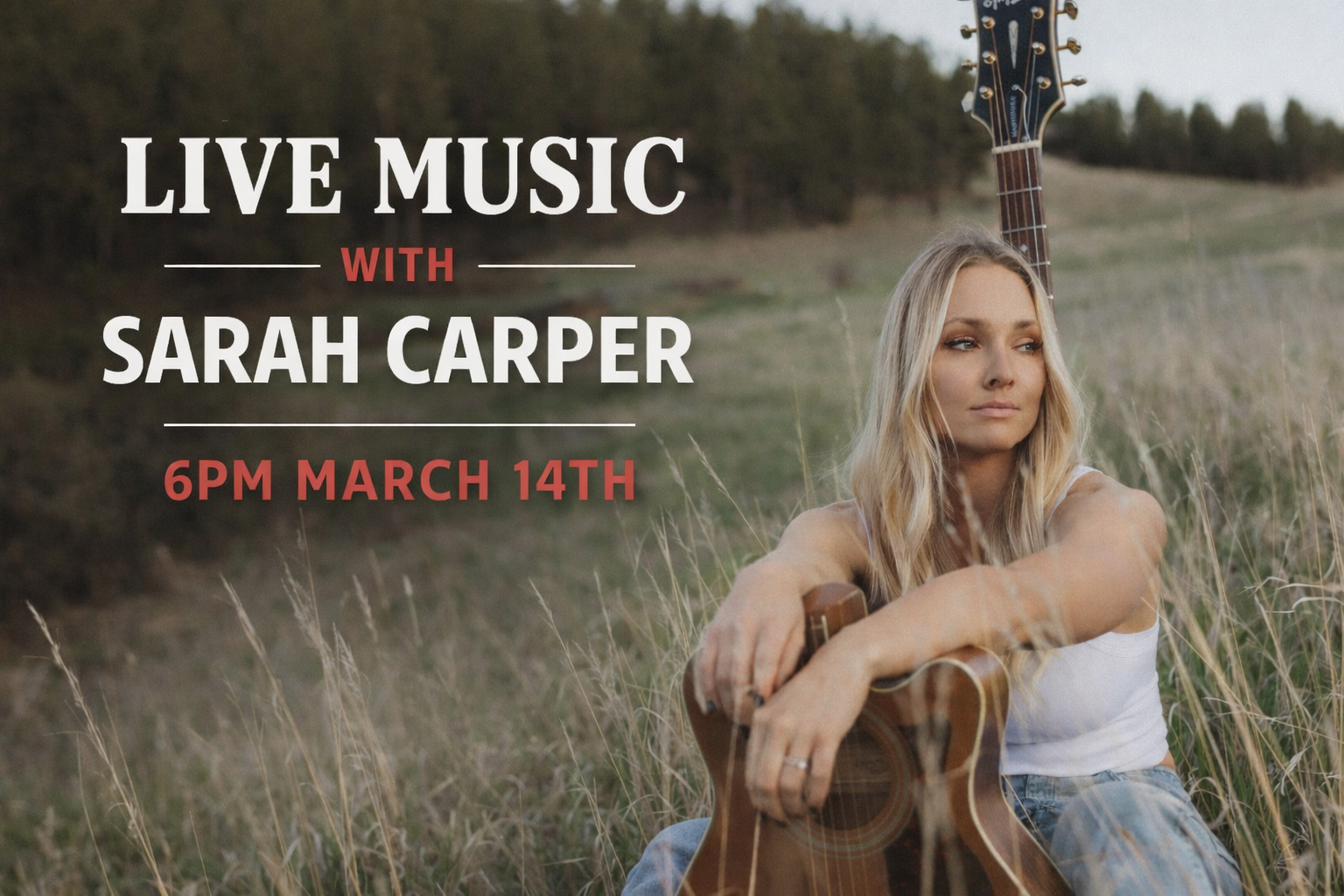 Local Sarah Carper is bringing her country singer-songwriter talents to Crow Peak once again! She delivers both crowd-favorite covers and heartfelt originals.