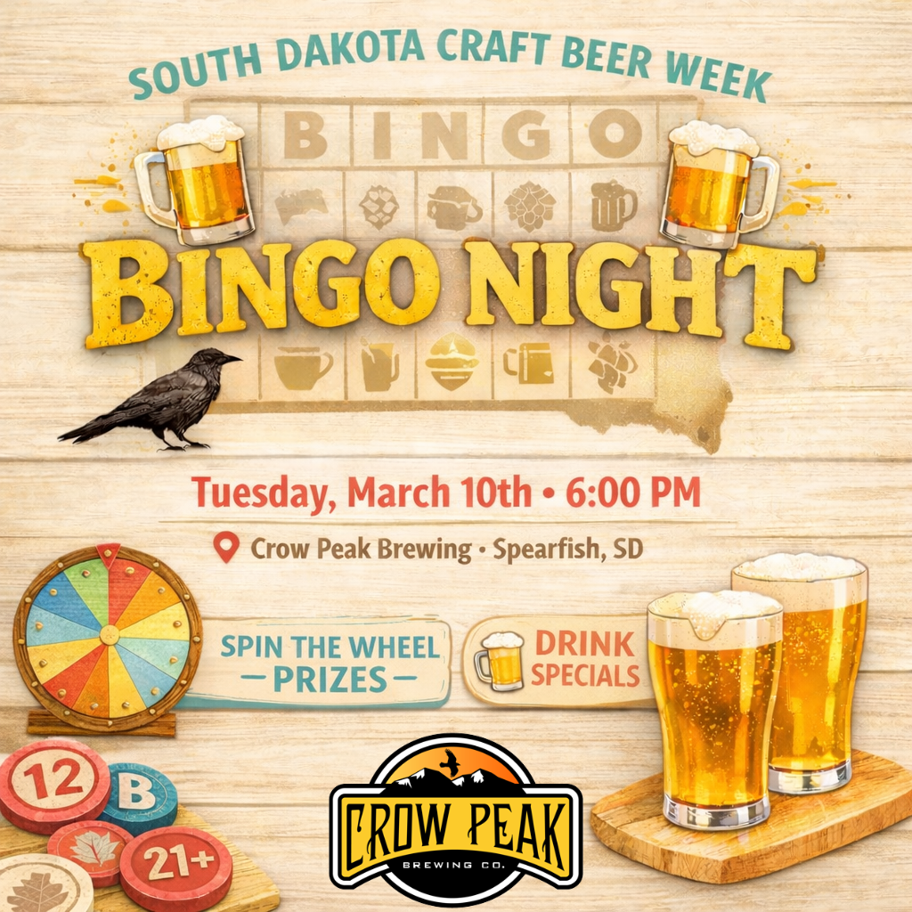 It’s South Dakota Craft Beer Week and we’re celebrating with a special bingo night! The prize wheel will be back so you have a chance to win extra bingo cards, merch and beer tokens!