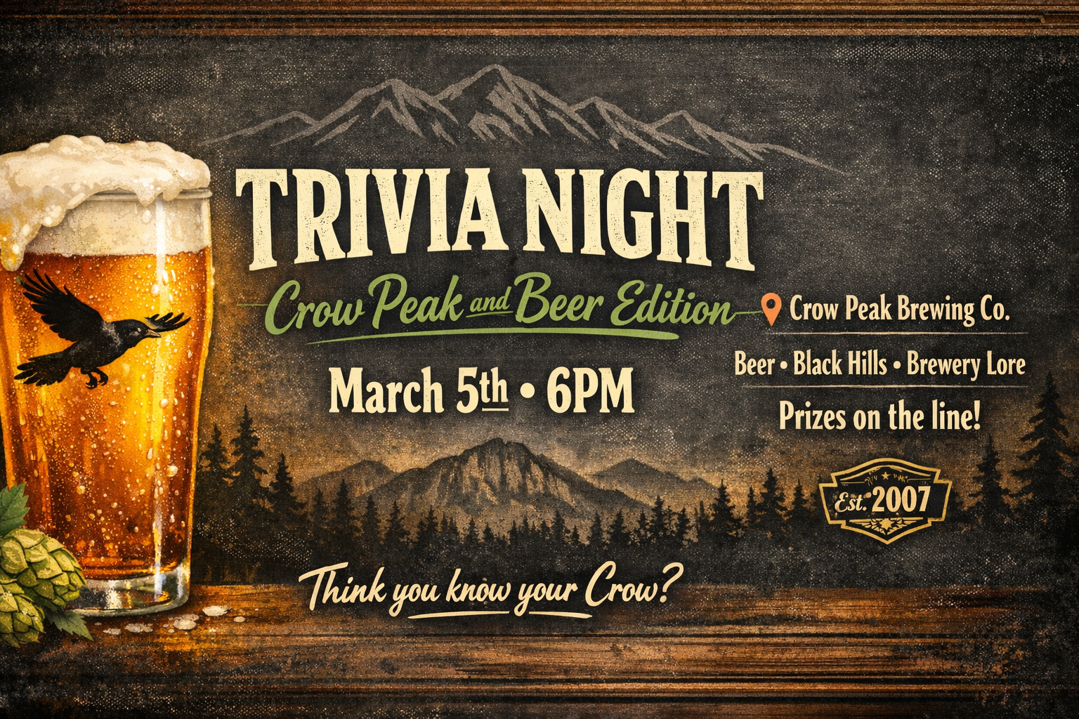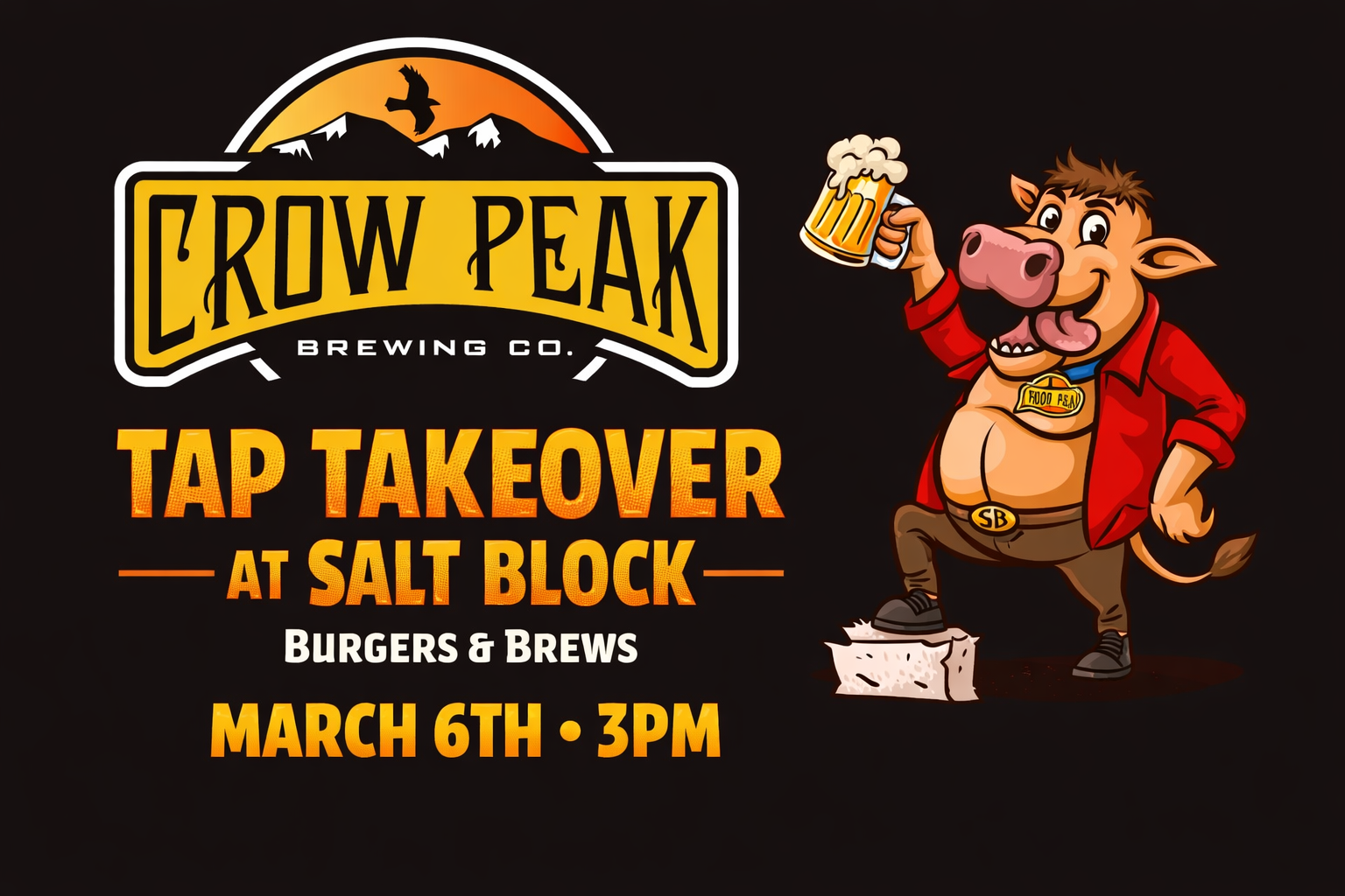 Join the Crow Peak crew on March 6th from 3–7PM as we pour cold pints and hang out at Salt Block! A few of our crew members will be on site serving beer, chatting all things Crow Peak, and giving away some merch while we’re at it 👀