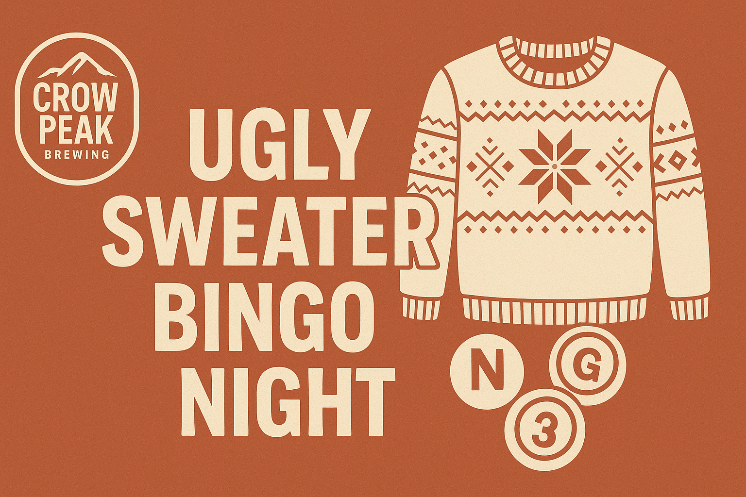 Crow Peak BreweryWe're taking Bingo night up a notch and making it festive af 🎄☃️🎅🏼 Prize awarded for the best Christmas sweater! The uglier the better.