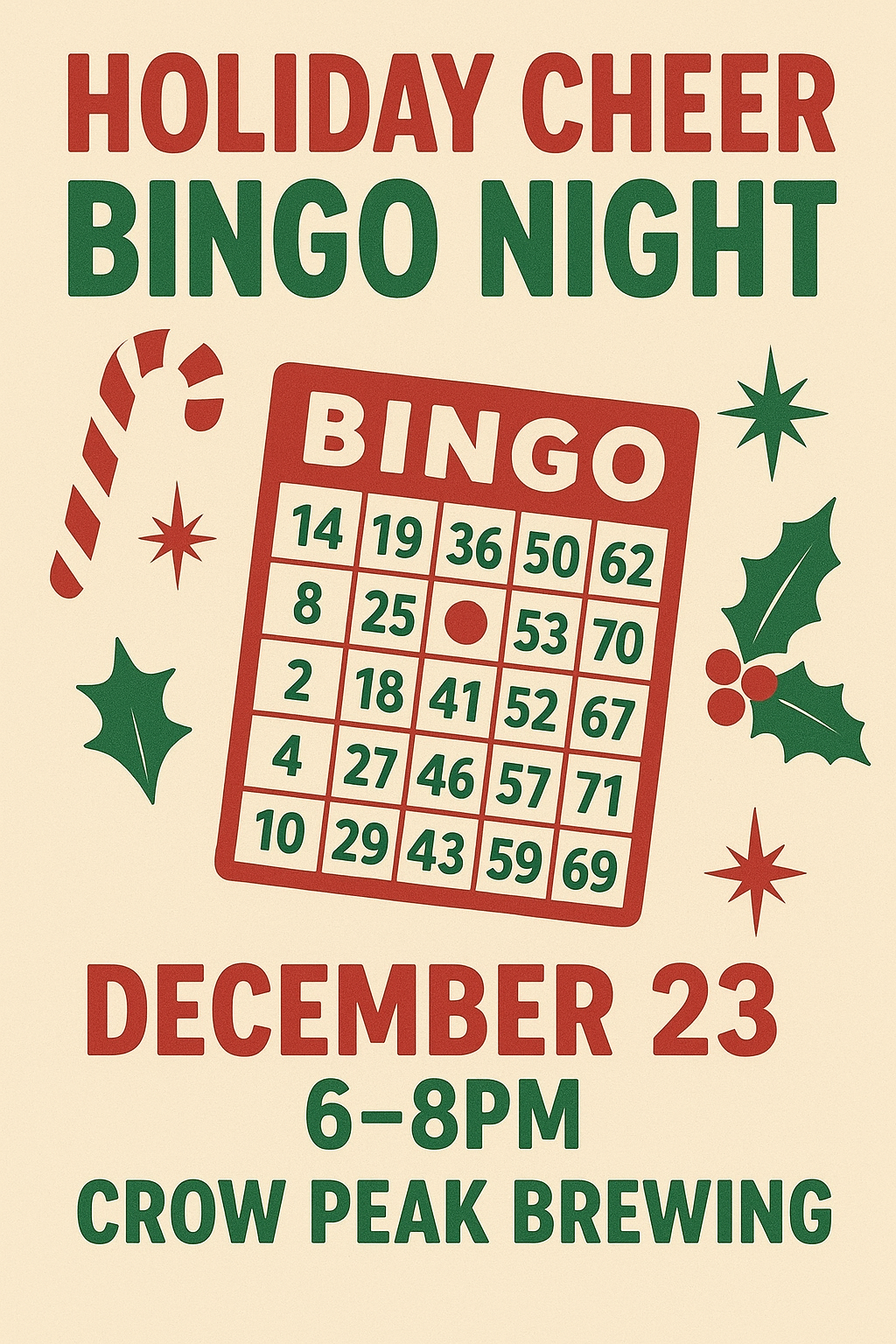 Crow Peak BreweryJoin us for the last Bingo night of 2025! 6-8pm. A portion of proceeds will go to St. Vincent de Paul